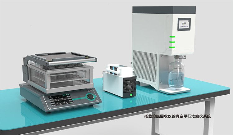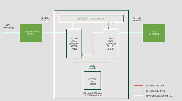 “干式”低溫冷凝——溶劑回收更高效 APE 系列不僅可以選擇傳統(tǒng)的冷卻循環(huán)水機搭配玻璃冷凝器對溶劑蒸汽進行冷凝回收,還可以選配 eSR220S 溶媒回收儀對溶劑蒸汽進行高效冷凝回收,溶媒回收儀采用“干式”低溫冷凝技術(shù),無需使用冷卻循環(huán)液,-20℃低溫下對溶劑蒸汽直接進行冷凝,特別適合低沸點溶劑高效冷凝收集。