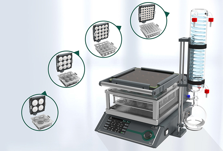 模塊化設(shè)計——兼容多種容積樣品瓶 APE 系列真空平行濃縮儀采用模塊化設(shè)計,可以選配 850ml、 05450ml、250ml、60ml 樣品瓶適配器,滿足不同體積樣品濃縮需求。